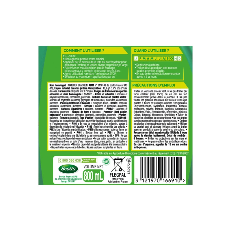 - Grande polyvalence : élimine les insectes nuisibles et protège les végétaux