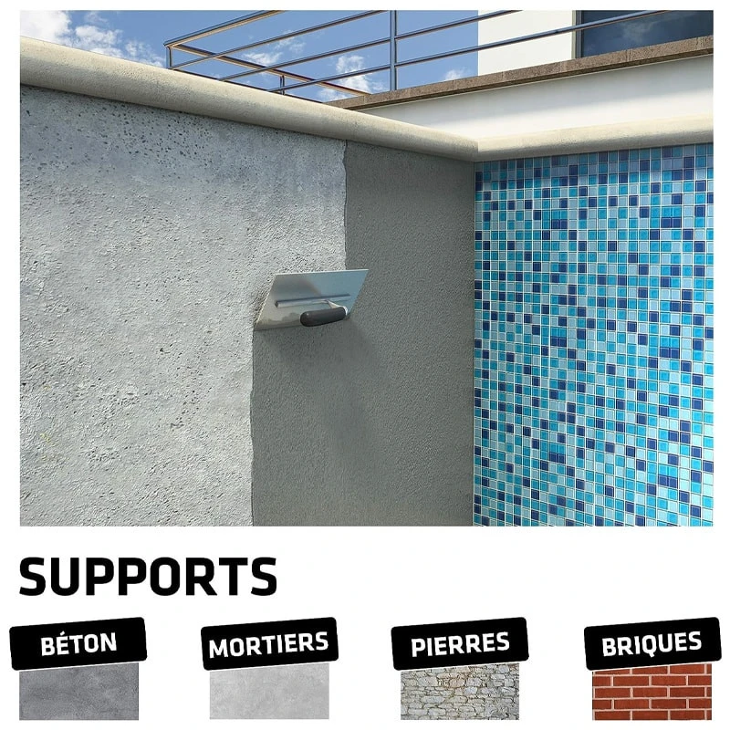- Adhérence excellente sur la plupart des supports (béton, mortier, pierre, brique, …)